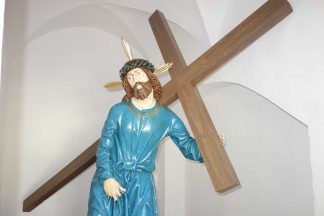 Rechtzeitig vor Ostern an seinen Platz in der Fußgängerzone am Priener Marktplatz zurückgekehrt ist der ein schweres Kreuz tragende Ölberg-Christus. Wie berichtet war das gesamte Ensemble schwer beschädigt und von Ehrenoberleutnant Paul Panzer von der Priener Gebirgsschützenkompanie in aufwendiger und ehrenamtlicher Weise restauriert worden.