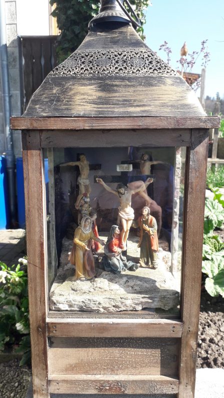 Zum Karfreitag beschreibt Pfarrer Klaus Hofstetter seine vormalige Weihnachts- und nunmehrige Osterkrippe wie folgt: