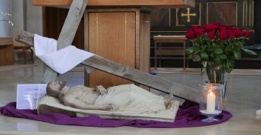 „Bei dem Kreuz Jesu standen seine Mutter und die Schwester seiner Mutter, Maria, die Frau des Klopas, und Maria von Mágdala. Als Jesus die Mutter sah und bei ihr den Jünger, den er liebte, sagte er zu seiner Mutter: Frau, siehe dein Sohn. Dann sagte er zu dem Jünger: Siehe deine Mutter! Und von jener Stunde an nahm sie der Jünger zu sich.“ (Johannes-Evangelium 18,1 – 19,42 – Passion)