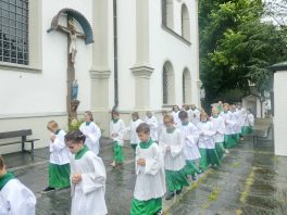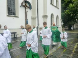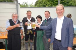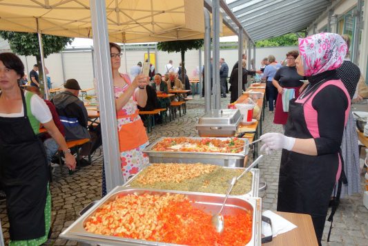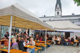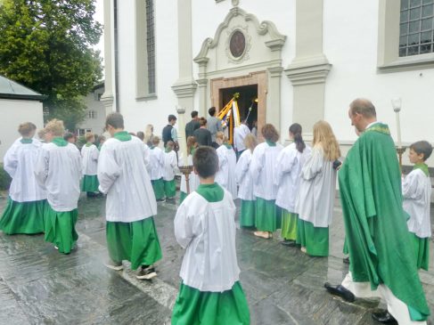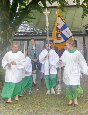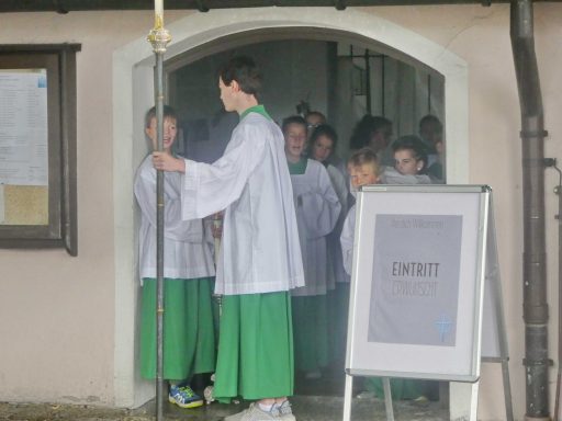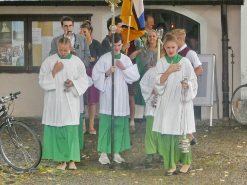 In ökumenischer Verbundenheit, mit Blasmusik sowie mit internationalen Gerichten wurde das heurige Pfarrfest in der Pfarrei „Maria Himmelfahrt“ in Prien gefeiert. Dem Festgottesdienst in der Pfarrkirche folgte ein gemütliches Zusammenkommen im Pfarrheim sowie wegen des Regenwetters unter großen Schirmen auf dem Pfarrplatz. Die kirchlichen Gremien wie Pfarrgemeinderat, Kirchenverwaltung und Kolpingfamilie setzten sich mit ihrem ehrenamtlichen Engagement dafür ein, dass es den Gläubigen gut ging. Für die musikalische Unterhaltung sorgte die Priener Blaskapelle, bei der Bewirtung gab es neben Chiemsee-Fischen und Grillbrotzeiten auch einen gut angenommenen arabisch-vegetarischen Teller. Der Katholische Frauenbund unterstützte das Pfarrfest mit einem Kuchen- und Tortenbüffet, die Erlöse davon und vom gesamten Pfarrfest kommen der Katholischen Jugend Prien zugute, die im Rahmen des Pfarrfestes ihr 30jähriges Bestehen feiern konnte. Im Rahmen des Festes gab Pfarrer Klaus Hofstetter bekannt, dass die Pfarrei heuer keine seelsorgerische Urlaubsvertretung erhalten wird. „Aus diesem Grunde haben wir in den bayerischen Ferien eine abgespeckte Gottesdienst-Ordnung. Für Prien zum Beispiel nur jeden zweiten Samstag ein Vorabendgottesdienst und jeden zweiten Sonntag haben wir einen Wort-Gottesdienst“. Wie Pfarrer Hofstetter weiter informierte, werden mit Beginn der Sommerferien 98 Ministranten aus den Pfarrverbänden Westliches Chiemseeufer und Bad Endorf an einer Ministranten-Wallfahrt nach Rom teilnehmen. Während die Katholiken ihr Pfarrfest feierten, kamen die Evangelischen Christen in ihrer Christuskirche zu ihrem Gemeindefest zusammen und ebenso gleichzeitig fand bei der Neuapostolischen Kirche der Bezirksjugendtag statt. „Im Geiste sind wir miteinander verbunden, das ist gelebte Ökumene in unserer Gemeinde“, so Pfarrer Hofstetter.