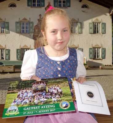 Leni Lex aus Prien, die in der Wildenwarter Grundschule (Außenstelle deer Franziska-Hager-Grundschule Prien) in die vierte Klasse geht, hat als Erste das von PrienPartner ins Leben gerufene Atzinger-Gaufest-Puzzle geschafft. Die ersten Tage der Pfingstferien nutzte das aufgeweckte Dirndl, um von allen 24 mitmachenden Geschäften die Einzelteile zu holen und das komplette Werk im Haus des Gastes vorzuzeigen. Als Schnellste konnte Leni Lex nunmehr einen Geschenk-Gutschein in Höhe von 50 Euro von Sabine Schädlich und ihrem Priener Spielladen entgegennehmen. „Mit dem Besuch der Geschäfte habe ich viel Neues in Prien entdeckt, das war eine ganz interessante Sache“, so das glückliche Dirndl, das zusätzlich eine Festschrift und ein Festzeichen von Anton Schlosser vom Festausschuss des Atzinger Trachtenvereins erhielt. Mit dabei waren auch PrienPartner-Vorsitzender Dr. Herbert Reuther und PriMa-Geschäftsführerin Andrea Hübner, die sich freuten, dass die Gemeinschafts-Aktion so großen Anklang findet.