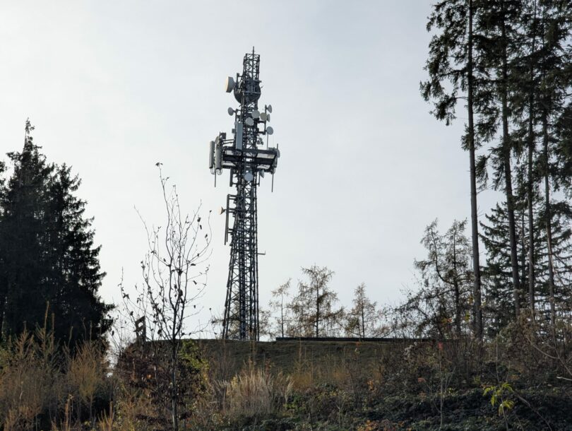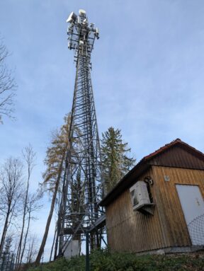 Nun folgen wir dem markierten Wanderweg durch den Wald nach Prien, verlassen diesen nach ein paar hundert Metern nach rechts auf einen Forstweg, der bald in die befestigte Zufahrtsstraße zum Mobilfunkmast und Hochwasserbehälter auf dem Höhenberg übergeht.