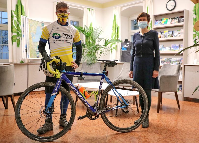 Seit 2008 lädt das Klima-Bündnis mit der Kampagne „Stadtradeln“ dazu ein, als Vorbild für den Klimaschutz in die Pedale zu treten und verkehrsbedingte Umweltschäden zu reduzieren. Mit der als Wettbewerb konzipierten Aktion soll ein Zeichen für den Klimaschutz gesetzt werden, indem privat als auch beruflich innerhalb von 21 Tagen möglichst viele klimafreundliche Radkilometer in den teilnehmenden Kommunen gesammelt werden. 2020 beteiligte sich erstmals die Marktgemeinde Prien am Chiemsee an der bundesweiten Initiative. Insgesamt haben 213 Teilnehmende in 28 Teams – aus Freunden, Familien, Schulen, Vereinen und Unternehmen – in dem Zeitraum von Samstag, 10. bis Freitag, 30. Oktober 2020 gemeinsam 27.822 Kilometer „erradelt“ und somit vier Tonnen CO² eingespart. „Quer durch alle Altersgruppen engagieren sich Prienerinnen und Priener für die Radförderung und die Lebensqualität in unserer Gemeinde und dem Klimaschutz im Allgemeinen“, freut sich die Geschäftsführerin der Prien Marketing GmbH Andrea Hübner. „Dieses Engagement schweißt zusammen, indem wir gemeinsam für unsere Zukunft etwas bewegen.“ Zusätzlich zu der Aktion „Stadtradeln“ wurden die drei besten Priener Teams von der Prien Marketing GmbH (PriMa) prämiert: an die Spitze radelte sich der Radfahrerverein 1893 Prien e.V. mit 20 Teilnehmern, Platz zwei belegt das Ludwig Thoma Gymnasium mit 42 Radlern und Platz drei das achtköpfige Team „Wasserwacht Prien-Rimsting“. Coronabedingt gibt es statt einen Wertgutschein für einen „Teamabend“, einen „Priener Gutschein – Priener Diridari“ im Wert von fünf Euro für jedes Mitglied der drei Siegerteams. Der Gutschein kann individuell in den beteiligten Priener Gastronomiebetrieben und Geschäften eingelöst werden. Eine herausragende Leistung vollbrachte Bianka Krumrey: In dem dreiwöchigen Zeitraum legte die Radlerin der drittplatzierten Gruppe 1.763 klimafreundliche Kilometer in der Seegemeinde zurück. Die PriMa überreichte der aktiven Prienerin einen neuen Fahrradhelm als Anerkennung.