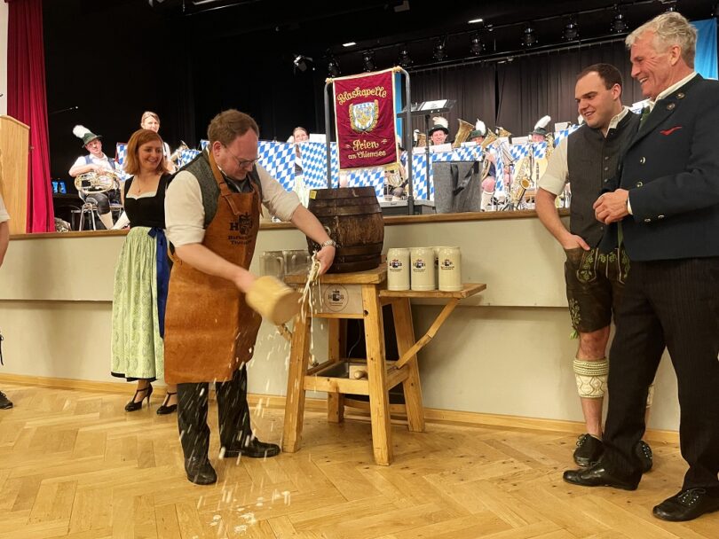Fotos: Hötzelsperger – Startfoto: Bürgermeister Andreas Friedrich zapfte gekonnt das Bierfaß vom Hofbräuhaus Traunstein an