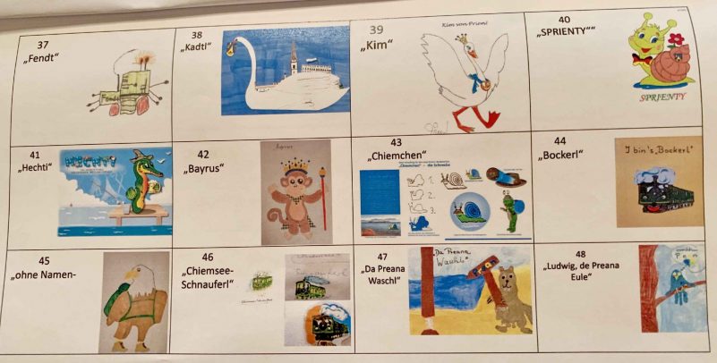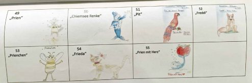 Als sich im vorigen Jahr eine kleine Schar von Priener Vereinsvorständen auf Einladung von Gemeinderat und Referent Michael Voggenauer (Sport und Vereine) zu einem Gedankenaustausch traf, da entstand die Idee, doch ein Priener Maskottchen zu suchen. Diese Idee griffen Bürgermeister Andreas Friedrich, die Rathausverwaltung, die Prien Marketing GmbH (PriMa) und die Gemeinschaft der Gewerbetreibenden PrienPartner (PP) auf und riefen insbesondere Kinder in der Corona-Zeit auf, kreativ zu werden. Insgesamt 55 Einsendungen gab es, gewünscht waren Zeichnungen und Basteleien und ein gewisser Bezug zur Marktgemeinde Prien a. Chiemsee. Ansonsten standen keine Vorgaben und Denkverbote im Raum und die Kinder konnten loslegen. Alle 55 Vorschläge standen nunmehr im Großen Sitzungssaal zur Vorauswahl für eine siebenköpfige Jury aus Rathaus, Gemeinderat, Ferienprogramm, PriMa und PP. In insgesamt vier Wahlgängen wurden dann die zehn Vorschläge mit den meisten Zustimmungen festgelegt. Diese zehn Motive stehen nunmehr bis Ende März im Internet zu einer Online-Abstimmung zur Auswahl. Alle Prienerinnen und Priener sowie Prien-Freunde sind zur Abgabe ihrer Stimme (je Person eine Stimme) aufgerufen. Ab sofort hat die Abstimmung begonnen, der hierfür gültige Link lautet: https://www.prien.de/de/familie_bildung/mal-_und_kreativwettbewerb.htm. Auf Anregung von PrienPartner-Vorsitzendem Dr. Herbert Reuther werden alle 55 Einsenderinnen und Einsender zum Dank für ihr kreatives Mittun einen 10-Euro-Diridari-Gutschein für den Einkauf in Priener Geschäften erhalten.