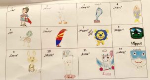 Fotos: Hötzelsperger – 1. Die 55 Vorschläge, die zur Suche eines Priener Maskottchens eingereicht worden sind. 2. Jury-Sitzung im Priener Rathaus