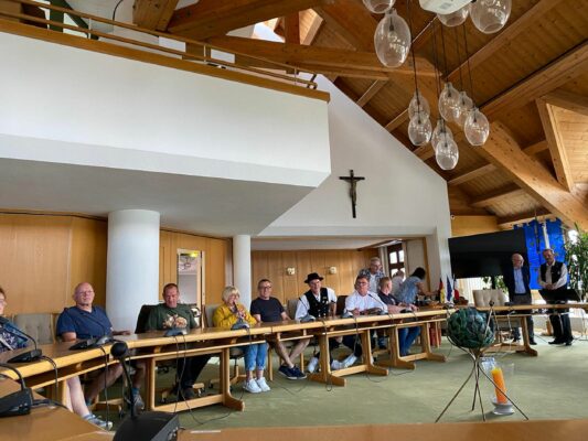 Als vor gut 40 Jahren durch einen Kuraufenthalt und Heimatabendbesuch im Großen Kursaal von Prien der Wunsch des damaligen Kassiers der Feuerwehr von Hasselbach in der Hochtaunus-Gemeinde Weilrod entstand, dass ein paar Jahre später (1986) die Priener Blasmusikanten und die Atzinger Trachtler zum 75jährigen Feuerwehrbestehen nach Hessen kommen mögen, da ahnte man sicherlich noch nichts von einer langanhaltend entstandenen Freundschaft. Inzwischen gab es eine Menge von gegenseitigen Besuchen und Auftritten zwischen den Feuerwehren, mit Musikanten, mit Chören und mit offiziellen Gemeindevertretern. „Daraus ist eine wahre Freundschaft entstanden ganz im Sinne unseres Tourismus“ – so Priens Bürgermeister Andreas Friedrich beim jüngsten Besuch der Feuerwehr von Hasselbach anlässlich eines kleinen Empfangs im Sitzungssaal des Priener Rathauses.