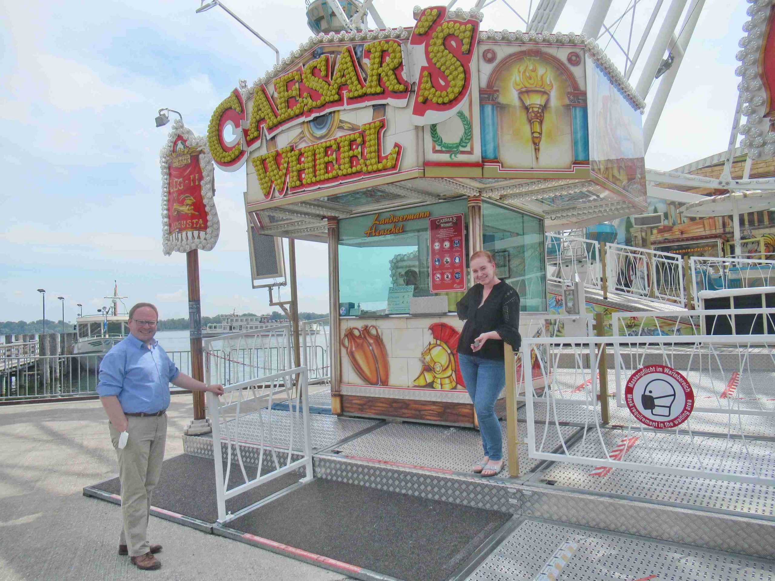 Bürgermeister Andreas Friedrich und Stefanie Landwermann am 38 Meter hohen Riesenrad.