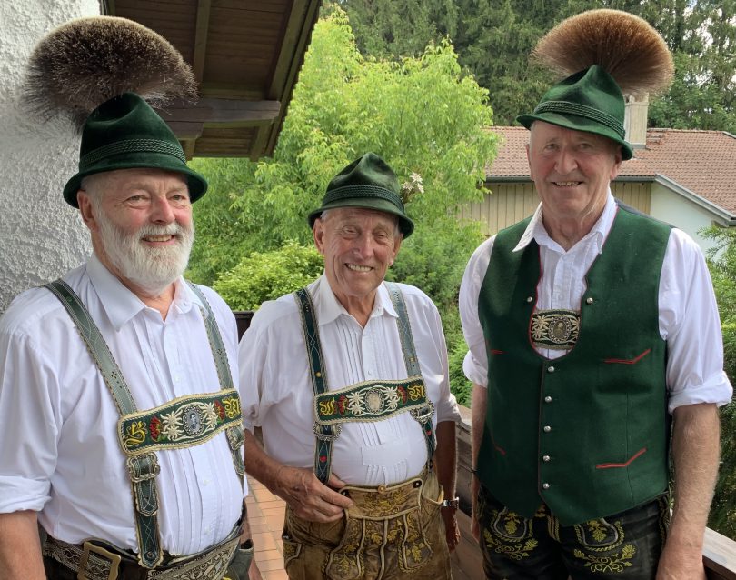 Fotos: Hötzelsperger – die Priener Trachtenvereins-Gratulanten von links Sepp Messerer senior, Walter Morgenroth und Peter Thaurer senior