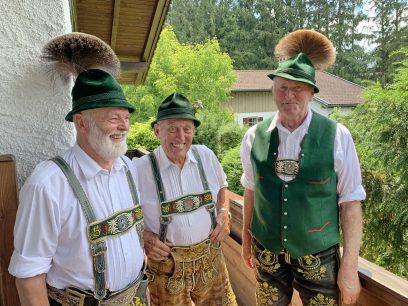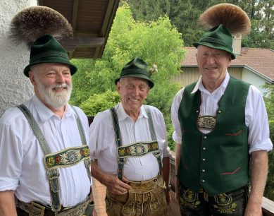 Seinen 80. Geburtstag hatte zu Beginn der Corona-Ausgangsbeschränkungen Walter Morgenroth aus Prien. Nach den nunmehrigen ersten Lockerungen war es wieder möglich, mit Freunden zu feiern. Zu den Gratulanten, die ins Haus des Jubilars kamen, zählten auch der Trachtenverein Prien und der Trachtenverein Atzing. Beim Priener Trachtenverein war Walter Morgenroth bereits als Kind und später als Aktiver dabei. Aus dieser Zeit gab es viel zu erzählen, unter anderem von einem Auftritt der Priener Trachtler vor 60 Jahren im Jahr 1960 beim Schützenfest in Bochum. “Ganz gut und gerne erinnere ich mich daran, dass wir als Kinder bei den Heimatabenden im Saal des Bayerischen Hofs in Prien auftreten durften” – so Walter Morgenroth, der auch mit 80 Jahren noch gerne die Tracht anzieht und die Geburtstagsgäste in einer fast einhundert Jahre alten Säckler-Mayer-Lederhose empfing.