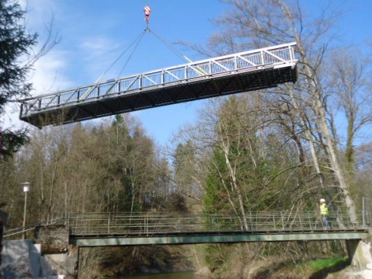 Foto/s: Bauamt Prien – Eindrücke vom Einbau des neuen Brückenüberbaus im Eichental