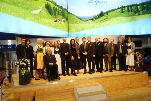 Fotos: Hötzelsperger – 1. Priener Bürgermeister Andreas Friedrich mit Bayerns Landwirtschafts- und Tourismus-Ministerin Michaela Kaniber, 2. Rosenheimer Delegation, u.a. mit Bgm. Andreas Friedrich, 3. Moderatorin Regina Wallner.