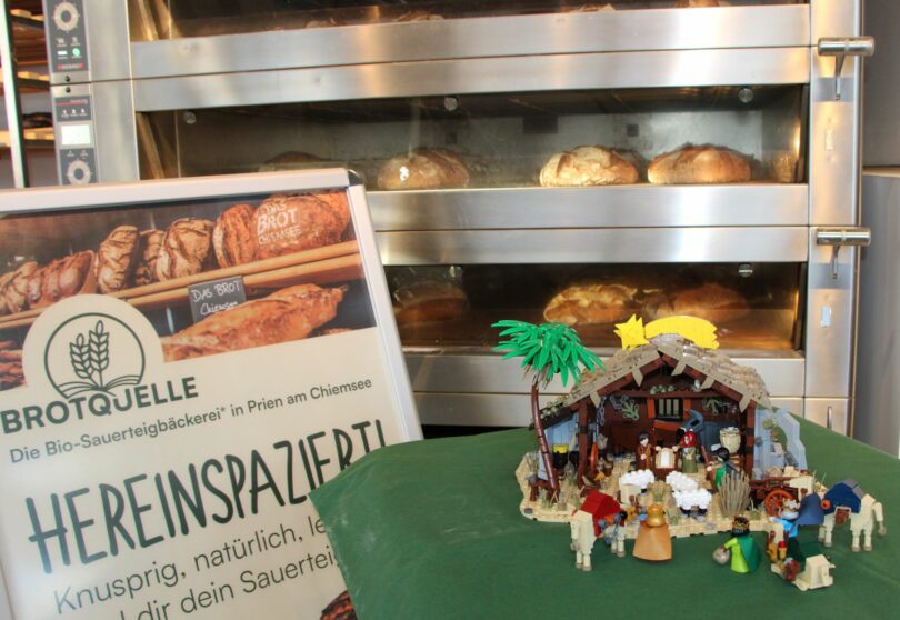 Foto: Von der minimalistischen Krippe über detailgetreue Krippenlandschaften bis hin zum Krippenspiel aus Klemmbausteinen gibt es in den Schaufenstern der Marktgemeinde viel zu entdecken. Marianne und Michael Quelle von „Brotquelle“ freuen sich erstmals an dem „Priener Kripperlweg“ teilzunehmen. Die 2024 neueröffnete Sauerteigbäckerei zählt seit kurzem – gemeinsam mit dem Eltern-Kind-Café „Salzkind“, EDEKA Coban und dem „trinkgut“ Getränkemarkt Coban – zu den über 60 beteiligten Akzeptanzstellen des „Priener Gutscheins“. Eine Auflistung finden Interessierte hier: gutschein-prien.de.