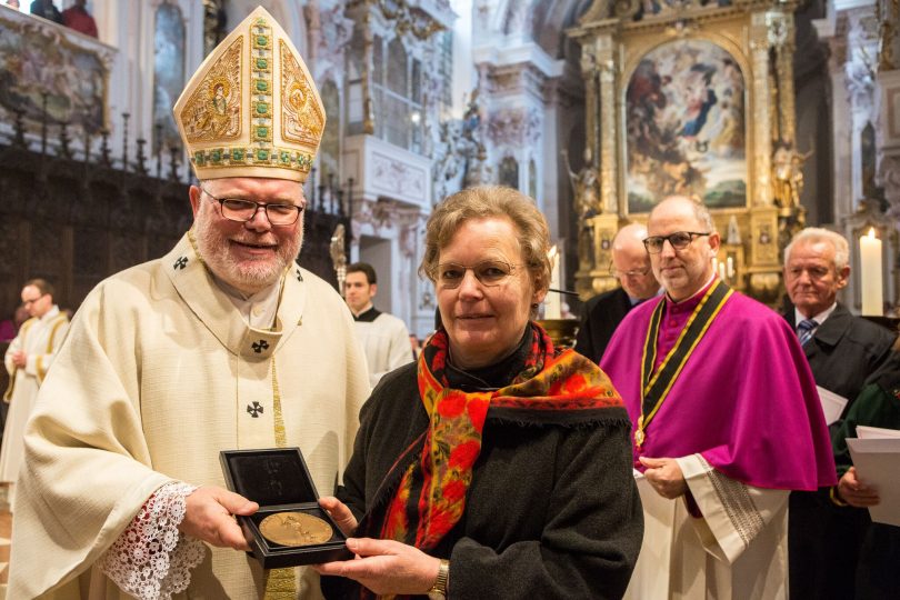 Kardinal Reinhard Marx mit Frau Eder bei der Verleihung der Korbinians-Medaille in Freising