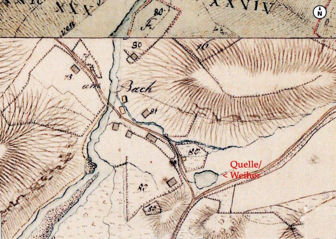 Flurplan vom Ortsteil Bach (1808 – 1864; Bayerische Vermessungsverwaltung, Geo-Portal)