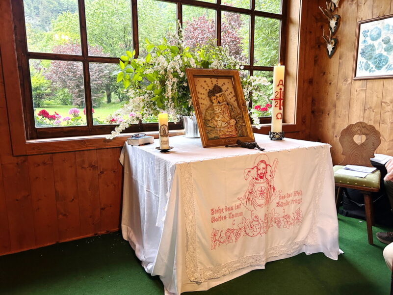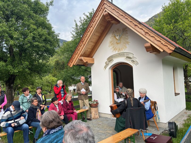 Danach finden die Andachten jeweils dienstags um 19 Uhr in den verschiedenen Weilern statt. In Berg wird die Mai-Andacht vom ökumenischen Frauenkreis Sachrang gestaltet und am Hertle-Kreuz gefeiert. Weiter geht es in Huben an der Marienkapelle beim Helln. Die Lektorin Regina Maurer-Fuchs übernimmt die Vorbereitung und Durchführung. In Innerwald treffen wir uns seit 2024 an der von Hans Pumpfer erbauten Marienkapelle, die 2021 eingeweiht wurde. Früher war die Mai-Andacht am Pichl-Kreuz. Die Vorbereitung und Durchführung übernimmt hier unser Kirchenpfleger Georg Graf Saurma. In Schwarzenstein findet die letzte Mai-Andacht an der Marienkapelle der Familie von Ribbentropp statt. Die Lektorin Christiane von Ribbentropp bereitet sie vor und führt durch die Andacht.