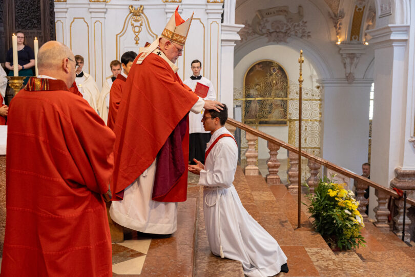 Die Priesterweihe empfing Sebastian König (32) aus der Pfarrei St. Georg in Taufkirchen bei München, der seinen Pastoralkurs im Pfarrverband Oberschleißheim absolvierte. Seine erste Kaplanstelle tritt er im Pfarrverband Esting-Olching an. Primiz feiert er am Sonntag, 30. Juni, um 10 Uhr in der Pfarrkirche St. Georg in Taufkirchen bei München, Nachprimiz am Sonntag, 7. Juli, in St. Wilhelm in Oberschleißheim. Als Primizspruch wählte er „Ich bin der Erste und der Letzte und der Lebendige“ (Offb 1,17-18) aus.