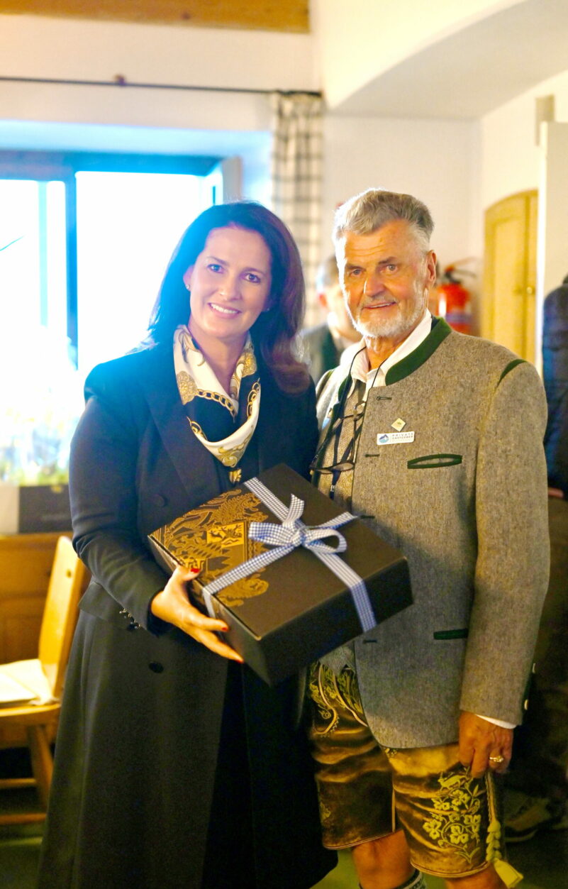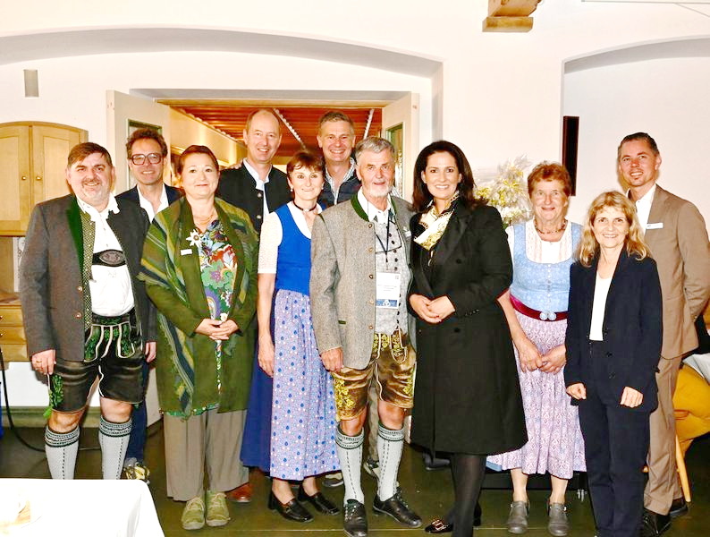 Bericht und Bilder: Judith Schmidhuber/StMELF – Auf dem ersten Foto abgebildet sind Staatsministerin Michaela Kaniber gemeinsam mit Bartholomäus (Bartl) Irlinger (7.v.li., 1. Vorsitzender Private Gastgeber im Chiemgau e.V.) sowie weitere Ehrengäste der Veranstaltung. Das zweite Foto zeigt (Bartl) Irlinger und Staatsministerin Michaela Kaniber.
