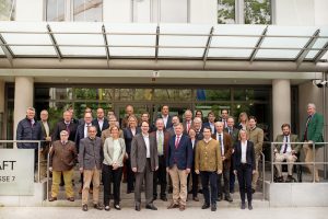 In der Mitte: Prof. Bitter und Bernt Farcke, Leiter der Abteilung 5 „Wald, Nachhaltigkeit, Nachwachsende Rohstoffe“ im Bundesministerium für Ernährung und Landwirtschaft, sowie die Präsidiumsmitglieder Josef Ziegler, Michael von der Tann, Roland Burger und Hauptgeschäftsführerin Dr. Irene Seling. Bildquelle: AGDW/Catberry Studios