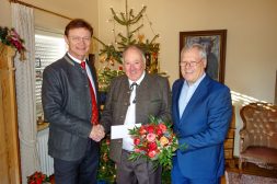 Seinen 80. Geburtstag konnte am Silvestertag Prof. Dr. rer. Oec. Günter Loos in Prien-Trautersdorf feiern. Zu den zahlreichen Gratulanten gehörten auch die Priener Bürgermeister Jürgen Seifert, Hans-Jürgen Schuster sowie telefonisch Alfred Schelhas. „Prof. Loos hat sich um Prien vielfach verdient gemacht“ – so begann Bürgermeister Jürgen Seifert seine Gratulationsworte und er fügte hinzu: „Als Sie vor einigen Jahren die von Bürgermeister Lorenz Kollmannsberger begonnene Arbeit des dreiteiligen Priener Heimatbuches zusammen mit Dr. Fritz von Daumiller und mit Anita Berger vollendet haben, haben Sie im wahrsten Sinne des Wortes Priener Geschichte geschrieben. Das Koordinieren, das Zusammentragen, das Schreiben und das Korrigieren waren eine richtige Meisterleistung“, so Bürgermeister Seifert, der zusammen mit seinem Stellvertreter Hans-Jürgen Schuster, einem ehemaligen Schüler von Prof. Loos an der Hochschule Rosenheim ein Präsent der Marktgemeinde überreichte. Prof. Loos bezeichnete seinerseits das Priener Heimatbuch als einmaliges Nachschlagewerk und erfreute sich am letzten Tag des Jahres noch vieler Besuche und Gratulanten in seinem Haus.