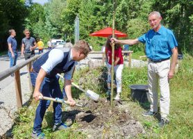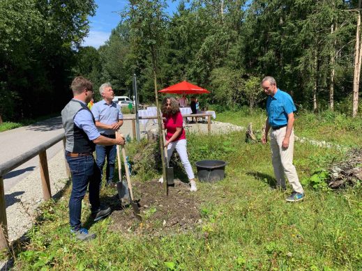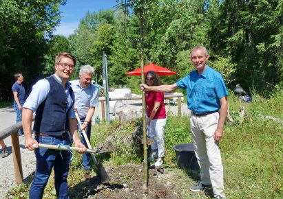 2. Von links: Bei der Baumpflanzung Johannes Thusbaß, Rudolf Leitmannstetter, Christina Pfaffinger und Herfried Stumpf.
