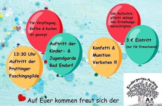 Für 13.30 Uhr ist der Auftritt der Pruttinger Faschingsgilde vorgesehen, weitere Annehmlichkeiten sind zu erwarten.