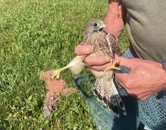 In dieser Woche konnte aufgrund der Aufmerksamkeit einiger Pruttinger Bürger und der Wildtierhilfe Amerang ein kleiner Falke gerettet werden. Dieser hatte sich mit seinem Fuß in einem Obstnetz verfangen, so dass er nicht mehr fliegen konnte und die Krallen teils schon abgestorben waren. An diesem Beispiel sieht man, welche Folgen es leider haben kann, wenn man Müll ungeachtet liegen lässt oder entsorgt. Bitte achten Sie darauf! Die Wildtierhilfe Amerang steht z.B. auch bei Mäharbeiten mit einer Suchdrohne für Rehkitze zur Verfügung, Tel. 0152/03932763.