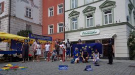Bei strahlendem Sonnenschein versammelten sich am Samstag, 13. Juni nachmittags Menschen auf dem Ludwigsplatz, um mit einer bunten Veranstaltung auf die Bedeutung des Schengen-Abkommens aufmerksam zu machen, dass vor 35 Jahren abgeschlossen wurde und in dessen Folge 10 Jahre später die Grenzbäume im Schengen-Raum fielen. Mit einem spannenden Quiz zum Thema Schengen konnten sich die Besucher auch unter Einhaltung der Abstandsregeln an der Veranstaltung beteiligen.