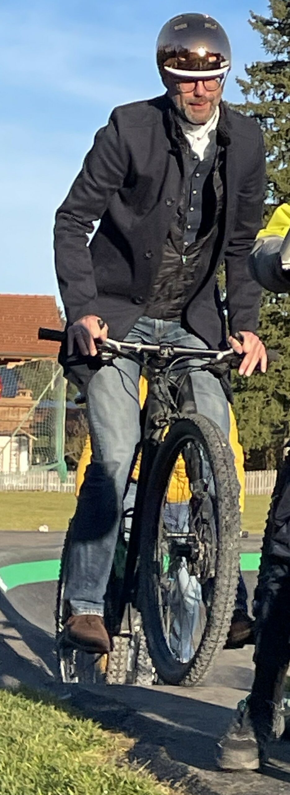 Bürgermeister Kattari drehte eine Proberunde auf der neuen Pumptrack-Strecke (Foto: Peter Enzmann)