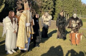 Der Nikolaus und die Wuidara verteilten Pass Geschenke an die Kinder. Foto: Peter Enzmann
