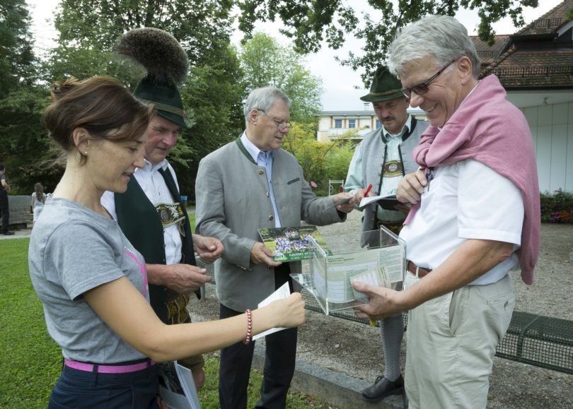 Vielfältige Unterstützungen erhielt der Trachtenverein “Daxenwinkler” Atzing beim erfolgreich abgeschlossenen 81. Gautrachtenfest. Zu den Förderern gehörte auch die Geschäfte- und Firmengemeinschaft PrienPartner, die eigens für das Gaufest ein Puzzle anboten. 24 Geschäfte und Wirtschaften galt es dabei anzusteuern, um jeweils ein Puzzle-Teil zu holen. Über 30 Dirndl, Buam, Einwohner und Urlaubsgäste machten sich auf den Weg und gaben das fertige Puzzle bei der PriMa im Haus des Gastes ab. Unmittelbar nach Abschluss der Festwoche zog PrienPartner-Vorsitzender Dr. Herbert Reuther (re.) mit PriMa-Geschäftsführerin Andrea Hübner(li.) unter der Aufsicht von 2. Bürgermeister Hans-Jürgen Schuster (Mi.) die Sieger im Beisein der beiden Festvereins-Vertreter Anton Hötzelsperger und Anton Schlosser (2.v.l.). Den Hauptpreis einer Tischreservierung beim Herbstfest im Flötzinger-Festzelt beim Blasmusik-Abend am Sonntag, 3. September gewann Anita Aicher aus Frasdorf-Stupfa, den zweiten Preis in Form eines Digital-Radios bekommt Ann-Kathrin Herrmann aus Rimsting, der dritte Preis von zwei Karten für den Kabarett-Abend mit Gerhart Polt 2018 in Prutting ging an Beate Scholz in Prien-Bachham, für den 4. Platz bekommt Sebastian Lackerschmid zwei Freikarten für Sessel- und Kabinenbahn auf die Hochries und einen großen Chiemseer Klosterlikör wird Ursula Stöhr aus Prien bekommen.