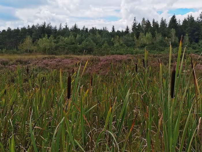Anschließend erreichen wir eine Autostraße, biegen rechts ein und verlassen diese wieder nach 200 m Richtung Siferling. Den Ort erreichen wir aber nicht, sondern biegen nach 200 m nochmals links in einen unmarkierten Nebenweg ab. Die nächsten 2 km geht es auf nun fast durchgehend kerzengerade durch das Stucksdorfer Moos. Dieses ist ein Hochmoor und wird nur von Regenwasser gespeist, deshalb sind Hochmoore extrem nährstoffarm. Den See erblicken wir nicht, dafür durchfahren wir jede Menge Schilf, Rohr und Heidekraut. Der Weg wird auch Russenweg genannt, er wurde nach alten Erzählungen von russischen Kriegsgefangenen während des Ersten Weltkrieges durch das Moor gebaut.