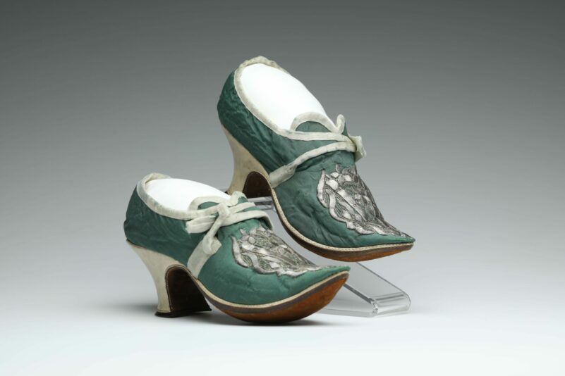 Bayerisch-Tschechische Landesausstellung 2023/2024 „Barock! Bayern und Böhmen“  – diese barocken Damenschuhe umgibt ein Rätsel. 1852 schenkte sie der Prager Stadthauptmann dem Böhmischen Landesmuseum. Dabei gab er glaubwürdig an, dass die Schuhe aus einer Krypta in Kralowitz bei Pilsen stammten. Die hier bestatteten Adeligen waren um 1600 verstorben. Die Schuhe sind aber 100 Jahre jünger. Die einzige Erklärung dafür ist, dass man die Toten um 1700 neu einkleidete. Kein Wunder, dass die Schuhe heute wie ungetragen aussehen. Aber warum wurden sie wieder abgenommen und dem Prager Stadthauptmann übergeben?