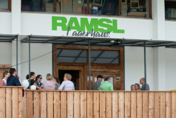 Während die Eltern durch die neuen Wohlfühlflächen spazieren und sich alles anschauen konnten, was es beim Ramsl halt so neues gibt, konnten die Kleinen sich draussen schminken lassen oder bei der Wurfbude die Konkurrenten in den Schatten stellen.Natürlich war auch für das leibliche Wo leckeren Steak- oder Würstlsemmel oder Weißwurst und Brezn vom Sallnerhof – lange haben wir schon keine so gute Steaksemmel mehr gegessen – gab es ein gutes und kühles Getränk von der Brauerei Schnitzlbaumer aus Traunstein.