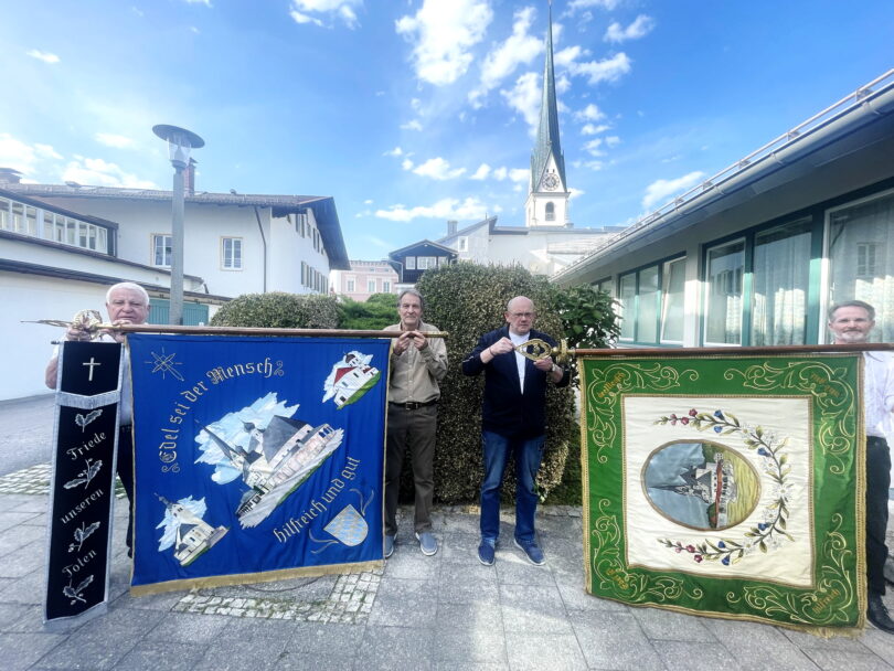 Fotos: Hötzelsperger – 1. Die Vorstandschaft des Bezirks der Rauch-Clubs – 2. Fahnen des Bezirks