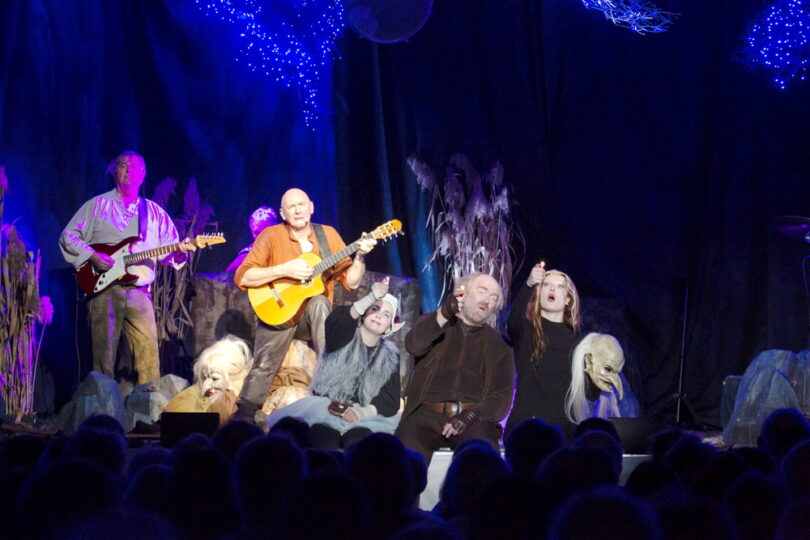 Als Erzähler führt das „Holzmandl“ durch den Abend, eine Figur, wie aus einem alten Sagenbuch entsprungen. Ihm zur Seite steht der possierliche kleine Troll aus dem hohen Norden, frech und vorlaut, zugleich aber überraschend tiefsinnig und poetisch. Der Kontrast zwischen den beiden Figuren sorgt immer wieder für rührende und lustige Momente und verleiht der Inszenierung eine besondere Wärme und Menschlichkeit.