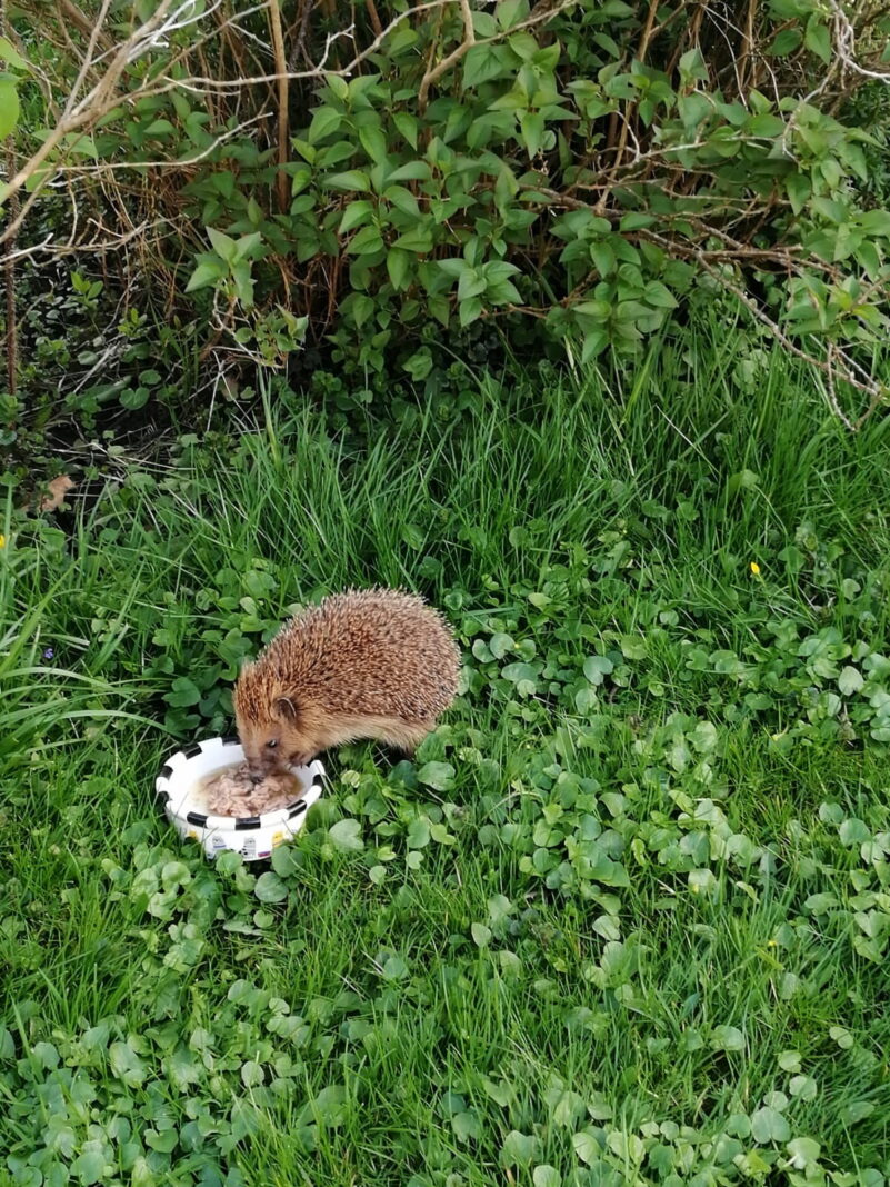 – so wie dieser Igel, der sich wieder über ein saftiges Frühjahrsgrün und über passende Fütterung freut.
