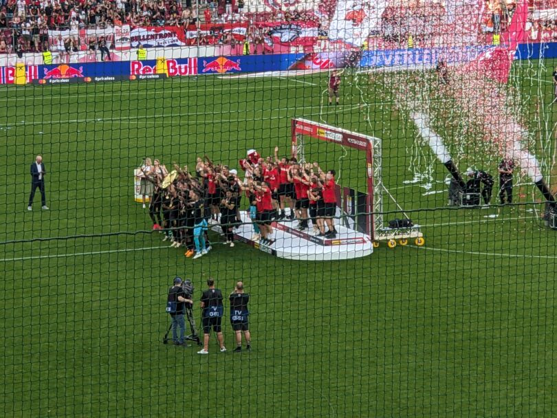 Ausgelassen wie selten feierten die Bullen dann ihren 10.Titelgewinn in Folge und auf dem Stadionvorplatz feierten Tausende Fans noch lange mit den Meisterkickern, die auch heuer wieder für die Gruppenphase der Champions-League qualifiziert sind. Die Erwartungen sind aber nicht so hoch wie in den vergangenen Jahren, denn es gibt zwar wieder einige gute Youngster die aus der Akademie nachrücken, aber ein Erling Haaland oder Karim Adeyemi scheinen nicht dabei zu sein und Sesko und Seiwald sind kaum gleichwertig zu ersetzen. Trainer Matthias Jaissle hat aber aus den Salzburgern ein Team der europäischen Spitzenklasse geformt und das Erreichen der K.O.-Phase ist immer drin.