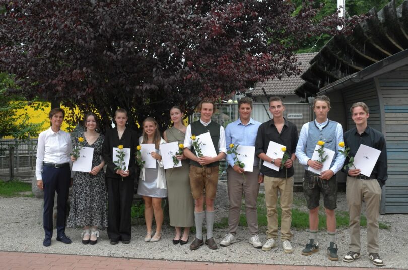 Bericht und Bild: Sylvia Braun – Mit dem Realschulabschluss in der Hand haben sie tolle Möglichkeiten: die Absolventen der Freien Waldorfschule Chiemgau zusammen mit ihrer Klassenbetreuerin.