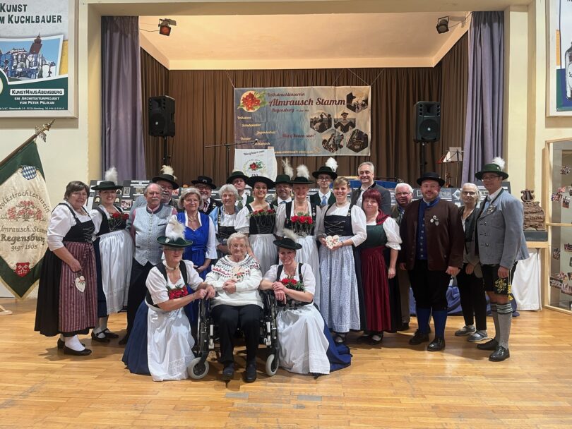 Wenn man auf das Vereinsleben zurückblickt, kann man sich das wie ein großes, feinmaschiges Sieb vorstellen. Ein Sieb, welches über die vergangenen 12 Jahrzehnte hinweg alles aufgenommen hat, was den Volkstrachtenverein „Almrausch Stamm“ e.V. ausmacht und das, was ihn geformt hat. Mit diesen Worten konnte 1. Vorständin Birgit Liebl am Samstag 25.10. die anwesenden 150 geladenen Gäste zum Ehrenabend in der festlich geschmückten Halle der SG Walhalla begrüßen. Gegründet wurde der Verein am 1. März 1905 in der Gaststätte „Zum goldenen Rad“ in Regensburg.