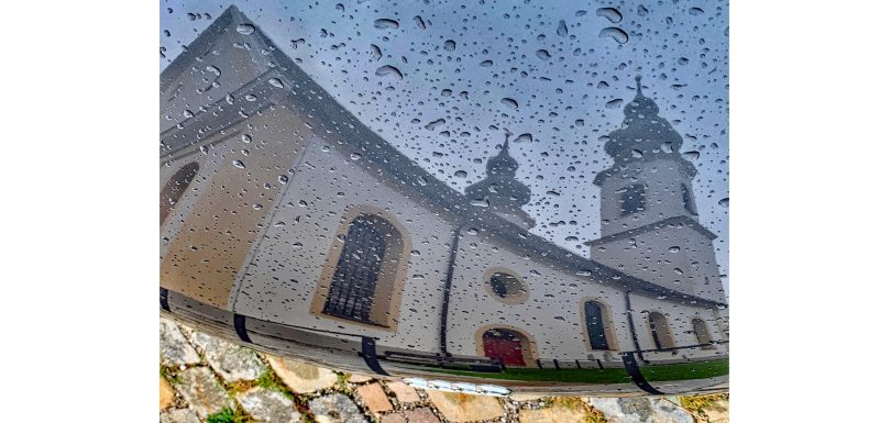Immer wieder kommt es der Region zugute, dass durch den Regen die Natur auftankt und dabei neue Kraft geschenkt wird. Besonders am dritten Sonntag im Oktober, zum Kirchweihfest, wird vielerorts in Oberbayern ein besonderes Augenmerk auf die Kirchengebäude gerichtet. Das durchwachsene Regenwetter der letzten Tage brachte den Segen von oben und hat ein besonderes Bild entstehen lassen bei dem man gleich zwei Mal hinschauen muss. Auf der frischpolierten Motorhaube eines parkenden Autos sammeln sich unzählige Regentropfen und spiegeln darin die Katholische Pfarrkirche von Aschau i.Chiemgau „Darstellung des Herrn“. Eines ist sicher, das ist ein Anblick denn man sicher nicht so oft findet.