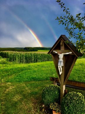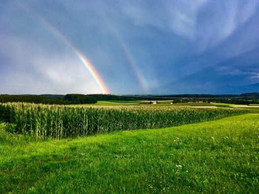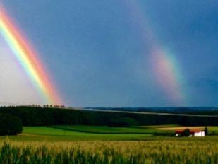 Einem Gemälde gleich und immer wieder faszinierend sind Regenbogen – so wie am heutigen Freitagabend nach einem Gewitterregen und nahe dem Chiemsee. Davon einige aktuelle Bilder.