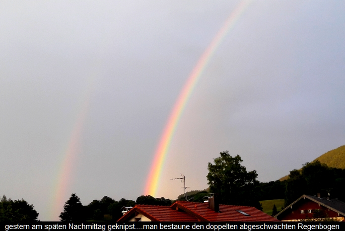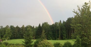 Das launig-wechselhafte Sommerwetter dieser Tage brachte auch einen Regenbogen über Grainbach zutage. Dabei sagte ein Gast: „Sowas können wir uns daheim nicht leisten“.
