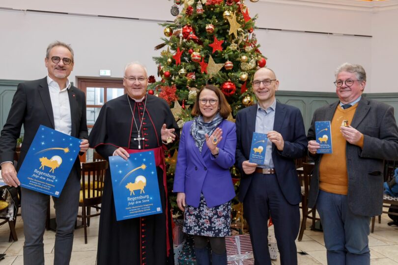 Bericht und Foto: Stadt Regensburg / StefanEffenhauser: (v.l.n.r): Kulturreferent Wolfgang Dersch, Bischof Rudolf Voderholzer, Oberbürgermeisterin Gertrud Maltz-Schwarzfischer, Michael Quast, Geschäftsführer Stadtmarketing Regensburg, Franz Glas, Vorsitzender Regensburger Krippenverein