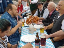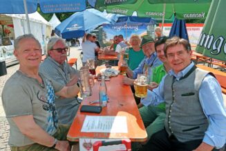Als ständiger Gast des Regensburg Festes war auch der Verein der Bayern in Berlin e.V. mit einer Abordnung vertreten. Der zweite Vorsitzende Detlef Weese bedankte sich beim Otto Aufleger vom Marketing für die Einladung und wünschte dem Fest einen erfolgreichen Verlauf. Franz Mayr, ebenfalls vom Verein der Bayern in Berlin, verlieh dem Frühschoppen eine typisch bayerische Note, indem er vor Ort das bayerische Kultspiel Schafkopfen mit Vereinskollegen praktizierte. Schafkopfen gehört in Bayern eben auch traditionsgemäß zu einem Frühschoppen.