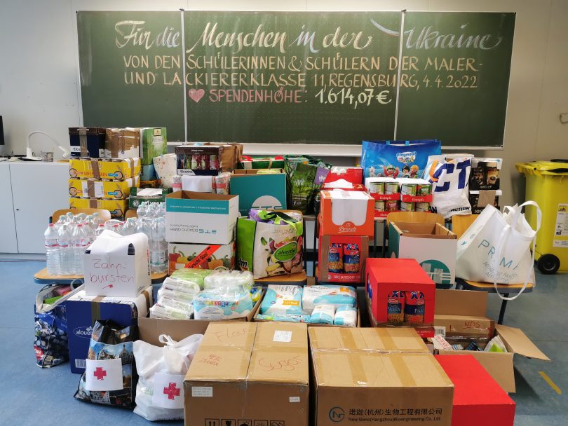 Berufsschüler zeigten Tatkraft und soziales Engagement – Drei Maler- und Lackiererklassen sowie eine Zimmererklasse der Städtischen Berufsschule II zeigten Tatkraft und soziales Engagement: Sie sammelten eigeninitiativ Spenden für die Ukraine. Insgesamt kamen dabei etwas mehr als 1.600 Euro zusammen, von denen die Schülerinnen und Schüler Lebensmittel, Medizin und Hygieneartikel für Menschen in der Ukraine kauften. Diese Artikel wurden anschließend von den Schülerinnen und Schülern sortiert, transportfähig verpackt und am 6. April 2022 in ein Feuerwehrfahrzeug verladen. Am Donnerstag, 7. April 2022, begann um 20 Uhr schließlich die Reise an die ukrainische Grenze. Schüler Florian Görlach aus der Klasse 4-ML11, der diese Hilfsaktion ermöglichte, begleitet und dokumentiert diese Reise.