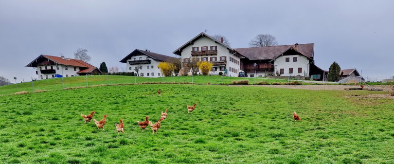 Meine Hühner haben den Regen jedoch nicht ganz so gern. Sie lieben es aber, bei bedecktem Himmel friedlich auf den Wiesen zu grasen” – so Maria Riepertinger vom Wastlhof mit Hofladen in Prien-Elperting.