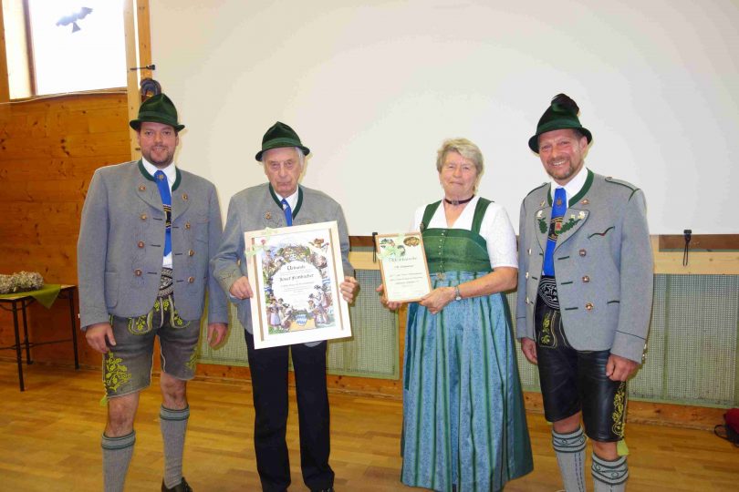 Zwei besondere Ehrungen konnten die Vorstände Martin Schober und Maxi Maurer vornehmen. Eine Nadel mit Urkunde für 50 Jahre Vereinstreue bekam Cilly Schweinsteiger und gar 70 Jahre gehört Sepp Fembacher dem 122 Jahre alten Rossholzener Trachtenverein an. Zu den Gratulanten gehörte auch Zweiter Bürgermeister Christoph Heibler, er bezeichnete die gute Nachwuchs- und Aktiven-Situation als Motor und Zukunft des Vereins und er zeigte sich sehr überrascht, wie aktiv der Verein bislang über die Corona-Zeit gekommen ist. „Vor Corona wurden die Feste immer größer, jetzt, wo sie weniger und kleiner geworden sind, sind sie uns auch bewusster geworden, was sogar ein Vorteil ist“ – so der Zweite Bürgermeister. Diakon Günter Schmitzberger ließ in einem Grußwort mitteilen, dass es für Kirche und Gesellschaft auf dem Samerberg und in Roßholzen gut ist, dass es den „Baschtler“ Trachtenverein gibt.
