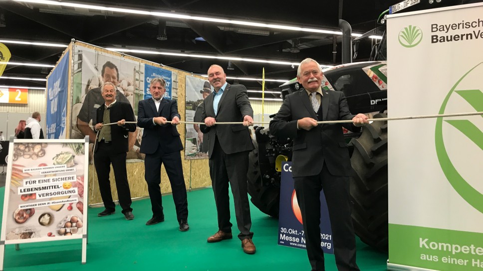 Metzger und Bauern wollen gemeinsam in die Zukunft: Der Veredlungs- und niederbayerische Präsident Gerhard Stadler, der Milch- und mittelfränkische Bezirkspräsident Günther Felßner sowie der Obmann des mittelfränkischen Metzgerverbandes Manfred Weber und Konrad Ammon, Landesinnungsmeister der bayerischen Metzger (v. l.).