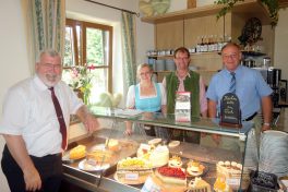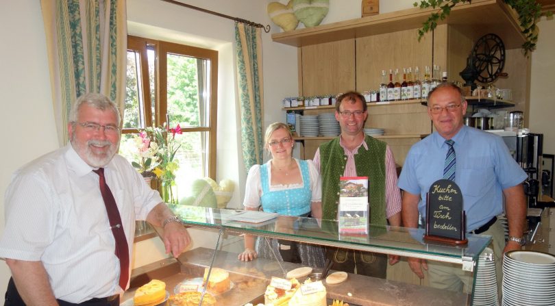 Fotos: Hötzelsperger – 1. von links an der Kuchentheke RegRo-Vorsitzender Sebasitan Friesinger, Viktoria und Sepp Heitzmann und Landrat Wolfgang Berthaler. 2. Cafe Wastelbauer in Rudersberg bei Bernau